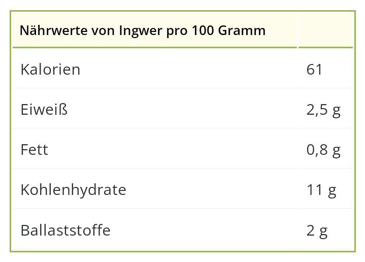 Wer gern und häufig mit Ingwer kocht, tut seinem Körper viel Gutes: Das ätherische Öl Gingerol und die leicht bitteren Scharfstoffe lindern zum Beispiel nachweislich Beschwerden wie Krämpfe und Verstopfung. Gingerol wirkt übrigens ganz ähnlich wie Acetylsalicylsäure (Aspirin) und gehört in der asiatischen Naturheilkunde zu den seit Jahrtausenden bewährten Mitteln bei grippalen Infekten und Fieber. Das ebenfalls enthaltene ätherische Öl Linalool besänftigt Blähungen; das Enzym Zingibain spaltet Proteine auf und macht darum eiweißreiche Gerichte besser bekömmlich.