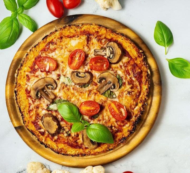 Auf einem Blech mit Backpapier zu einem Pizzaboden formen und mit Gabel mehrmals einstechen. Im vorgeheizten Backofen bei 180° Grad ca. 10-15 Minuten backen.
